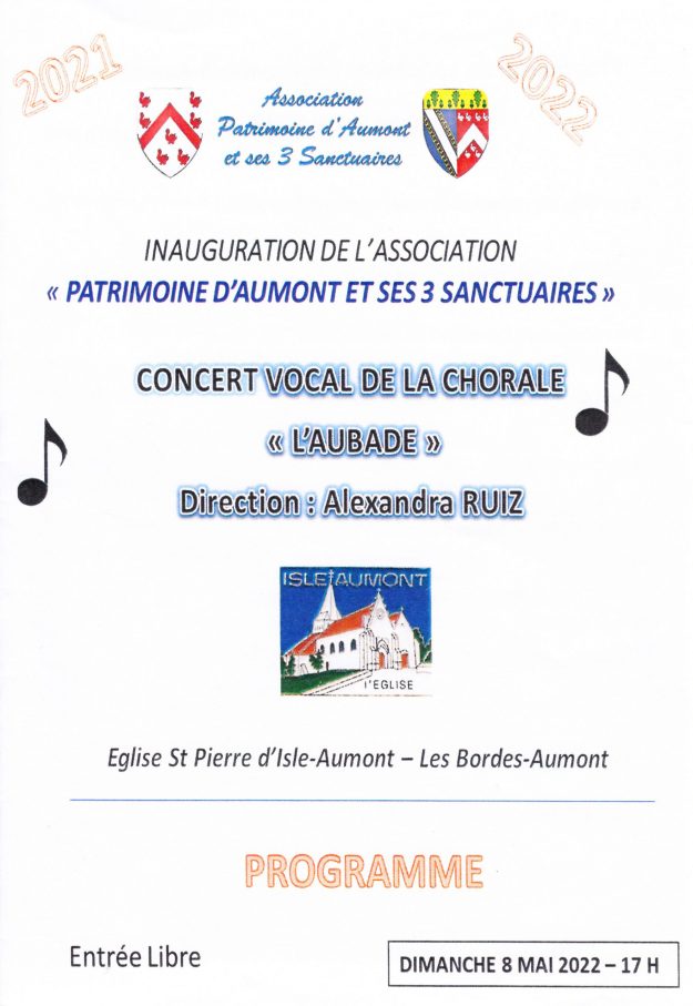 Concert Concert donné à l’invitation de l’association « Patrimoine d’ Aumont et ses 3 sanctuaires ». Invitation Programme du concert : Les vidéos du concert :