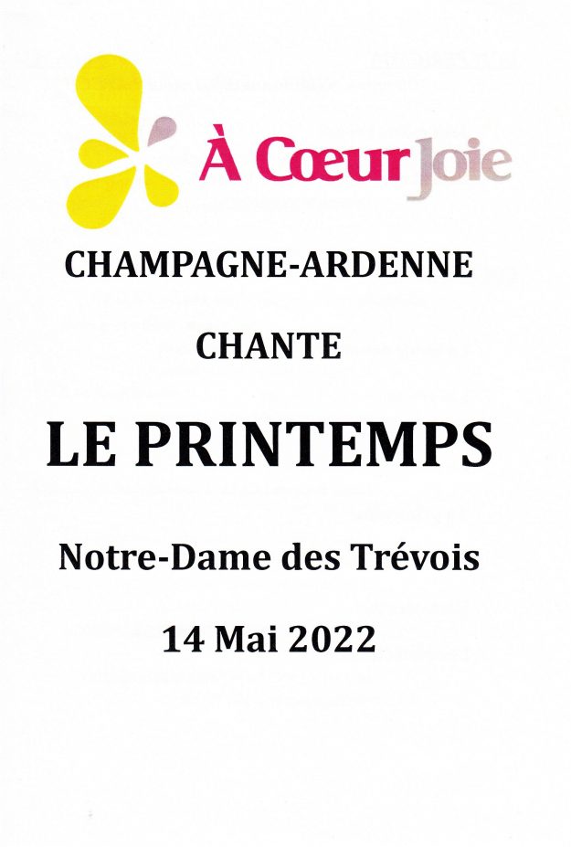Programme du concert Dom Pérignon Reims Chorale Coup de Choeur Châlon en Champagne Chorale l'Aubade Troyes Chants Communs