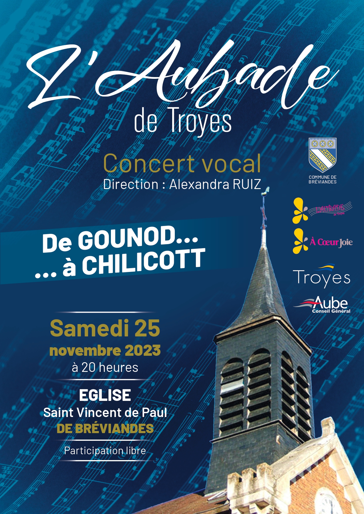 Affiche du concert Vidéos du concert Catégorie Non classéPar Arnaud de Charrin13 avril 2024Laisser un commentaire Auteur Arnaud de Charrin Navigation de commentaireOnglet précédent Onglet précédent Concert à Vaudes le 18 juin 2023Onglet suivantOnglet suivantDeux choeurs à l’unisson 2 juin 2024 à l’église Notre Dame des TrévoisRelated postsDeux choeurs à l’unisson 2 juin 2024 à l’église Notre Dame des Trévois8 juillet 2024Rentrée 202110 septembre 2021Répétitions en visio11 février 2021Adiemus confiné !22 juin 2020Concert pour le « Festival Chante » à Saint Parres aux Tertres le 9 juin 201818 juin 2018Concert à l’église Notre Dame des Trévois de Troyes le 25 mars 201823 mai 2018